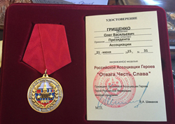 По поручению президента Российской Ассоциации Героев, Героя Российской Федерации, генерал-полковника Владимира Шаманова главе Саратова Олегу Грищенко вручена медаль «Отвага, Честь, Слава». Руководитель областного центра был удостоен высокой награды «За личное активное участие в подготовке и проведении Вахты Героев Отечества в Саратове».